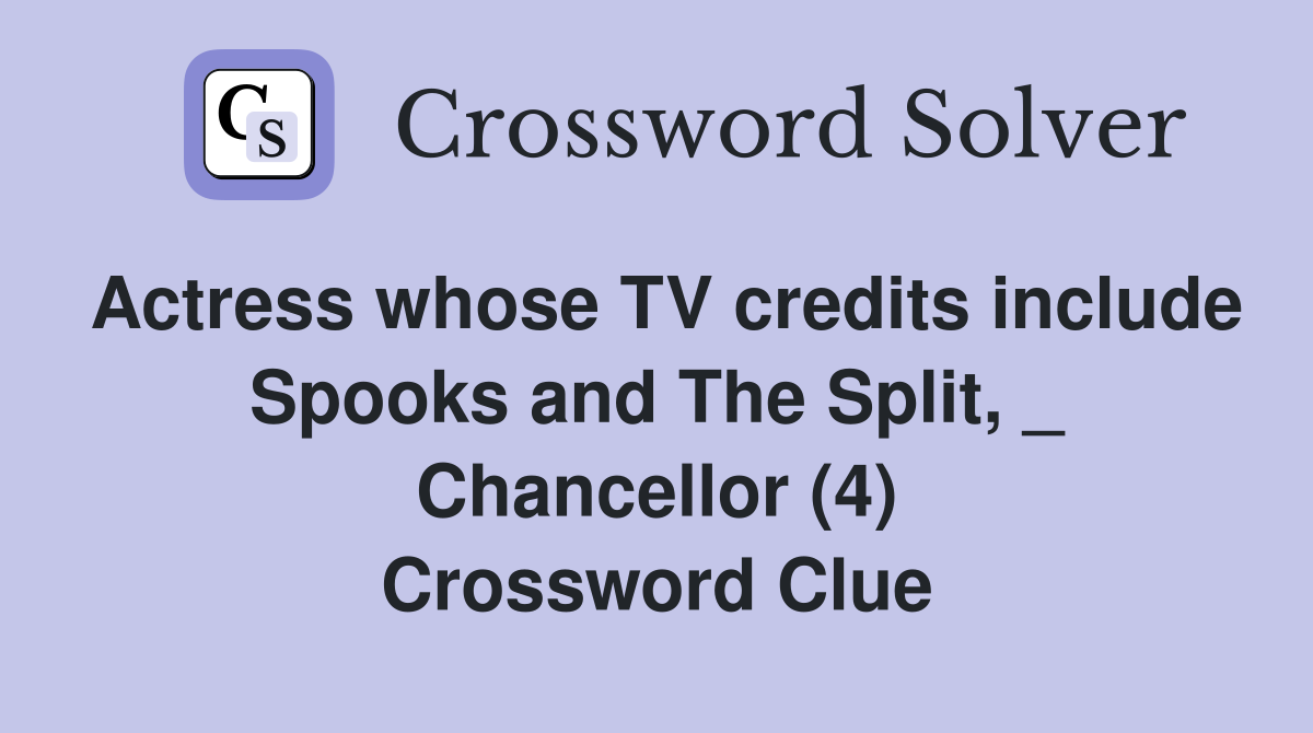 Actress whose TV credits include Spooks and The Split Chancellor (4