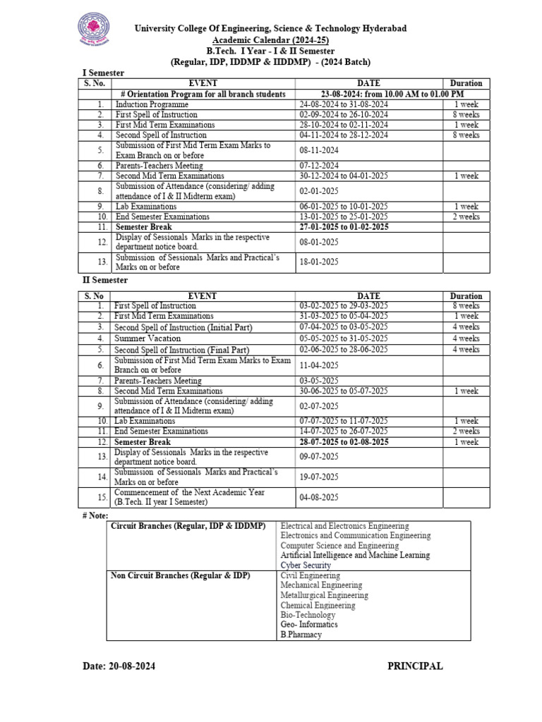 2024 25 B Tech Academic Calendar PDF Academic Term Engineering