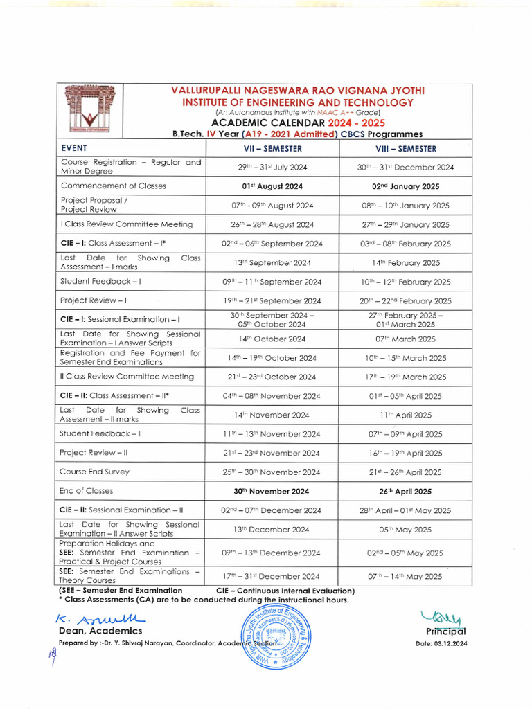 B Tech IV Year Academic Calendar 2024 2025 R22 03122024 Scanned PDF