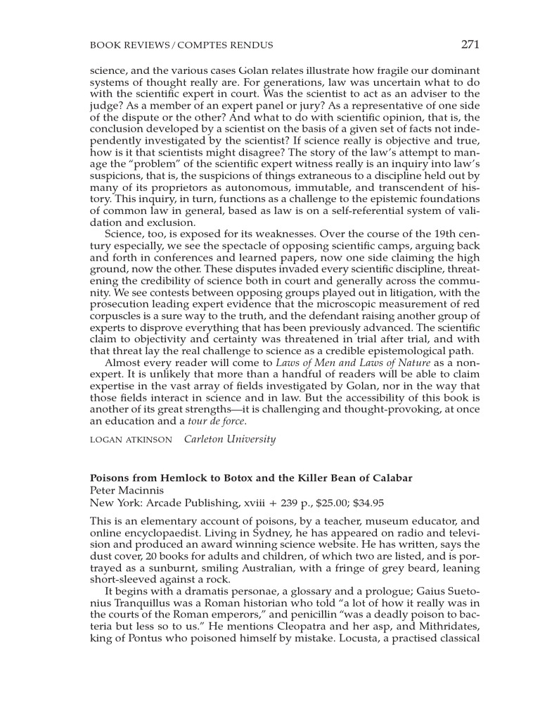 Carr 2016 Poisons From Hemlock To Botox and The Killer Bean of Calabar