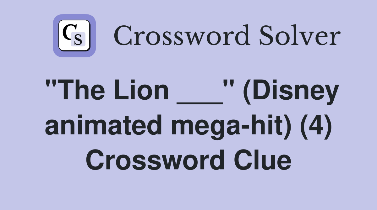 quot The Lion quot (Disney animated mega hit) (4) Crossword Clue Answers