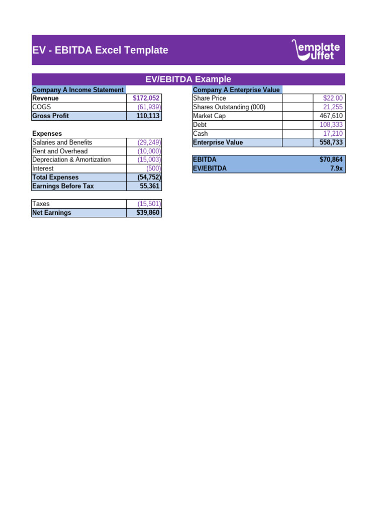 EBITDA Excel Template Easily Calculate Business Value with EV Model