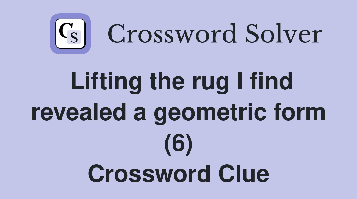 Lifting the rug I find revealed a geometric form (6) Crossword Clue