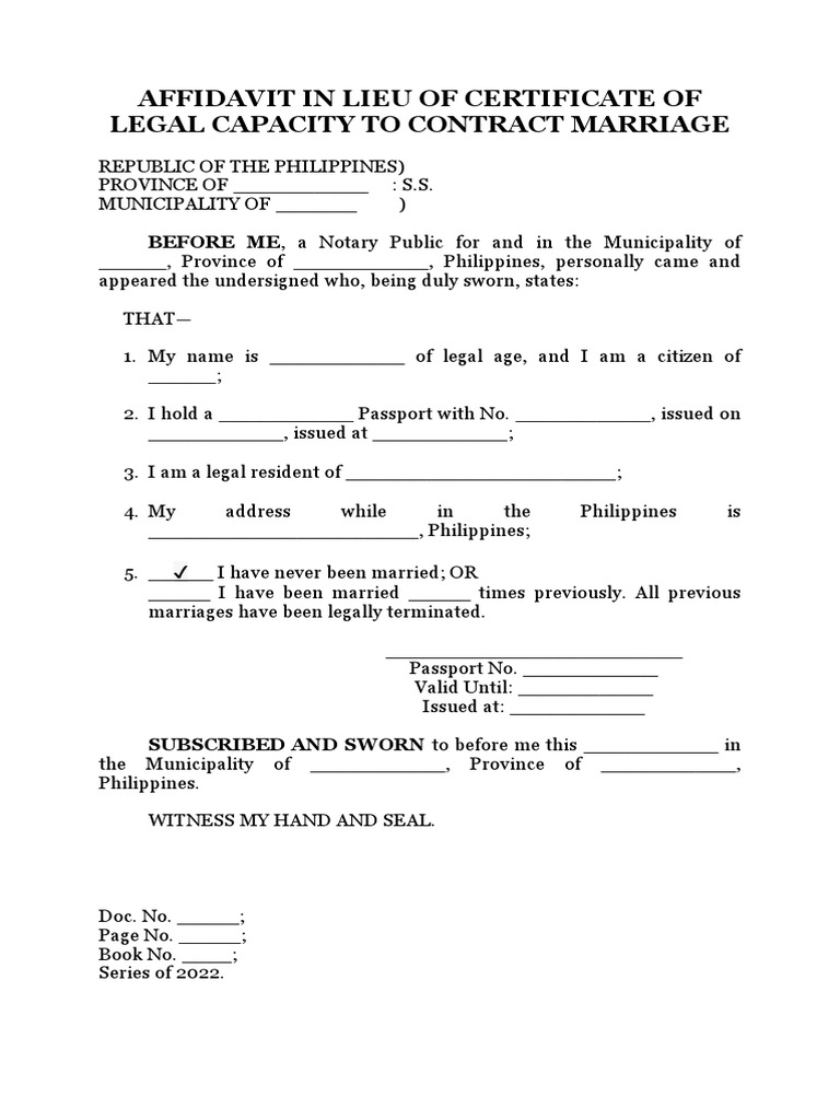 Certificate Of Legal Capacity To Contract Marriage Form Philippines