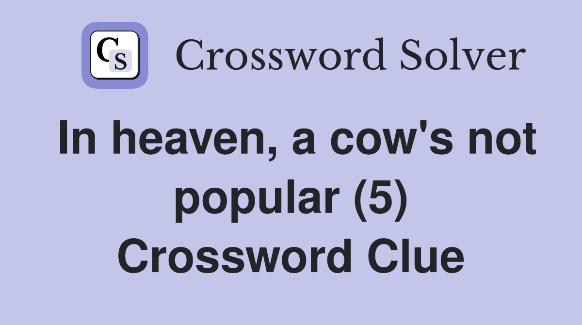 In heaven a cow #39 s not popular (5) Crossword Clue Answers Crossword