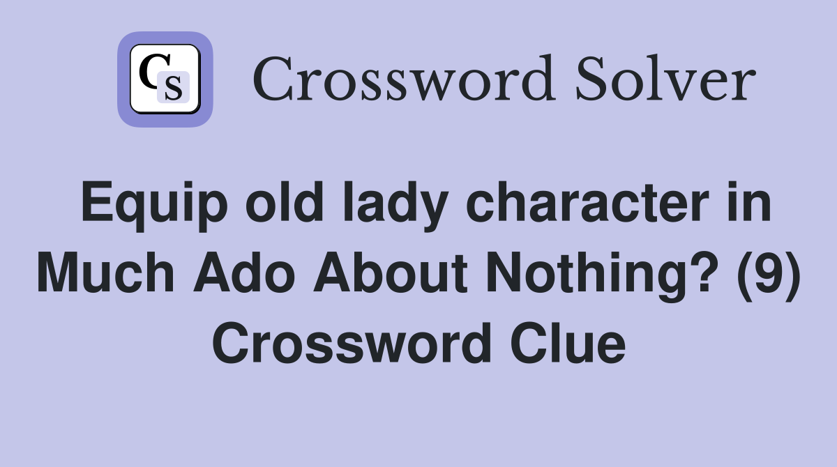 Equip old lady character in Much Ado About Nothing? (9) Crossword