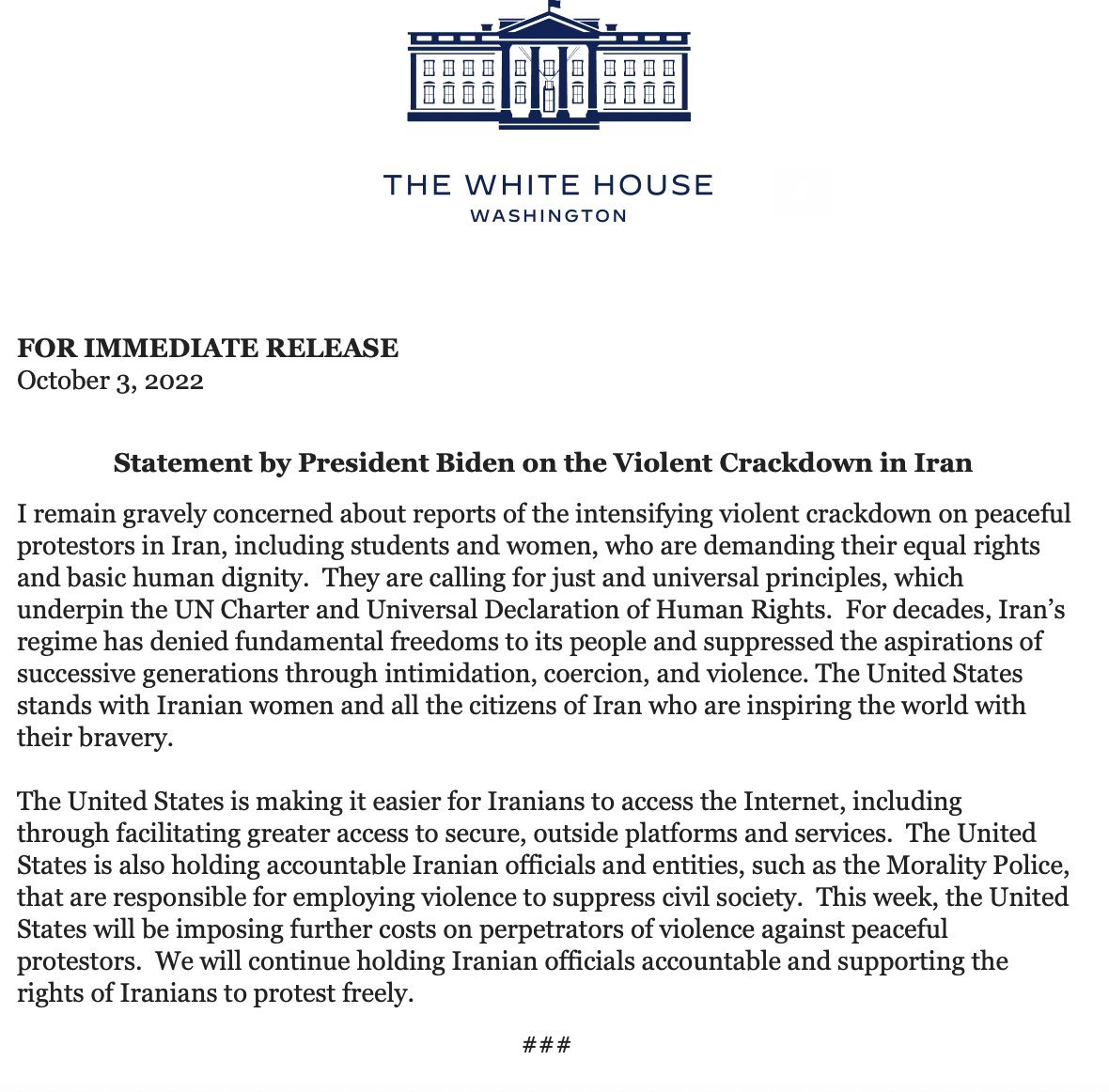 Saeed Ghasseminejad on Twitter: quot This statement by POTUS is strong and