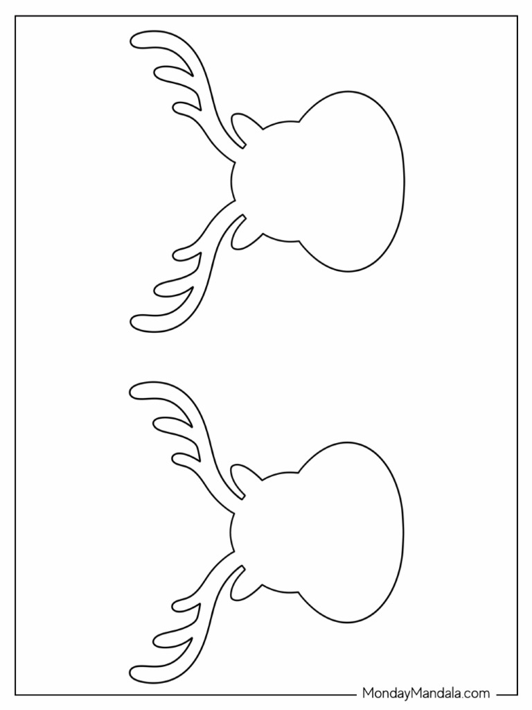 Two Half Page Simple Reindeer Face Outline Template PDF