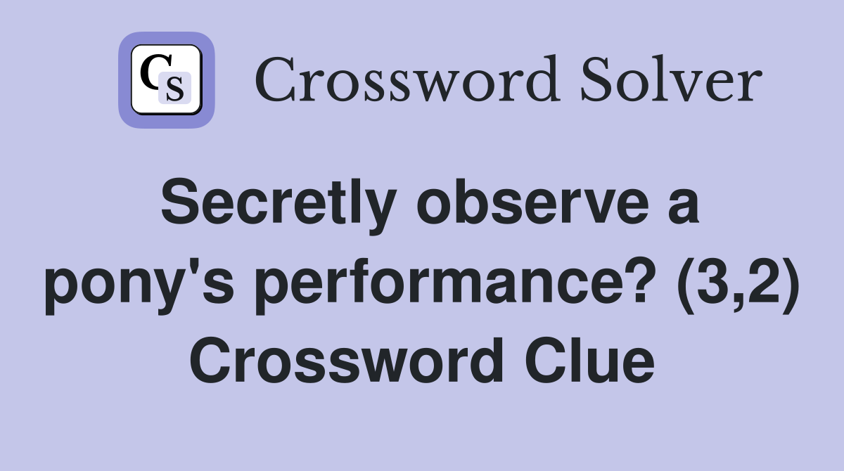 Secretly observe a pony #39 s performance? (3 2) Crossword Clue Answers