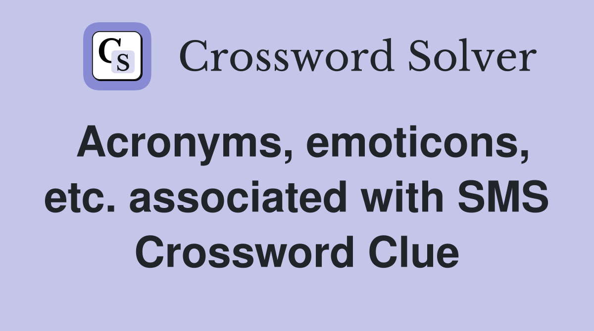Acronyms emoticons etc associated with SMS Crossword Clue Answers