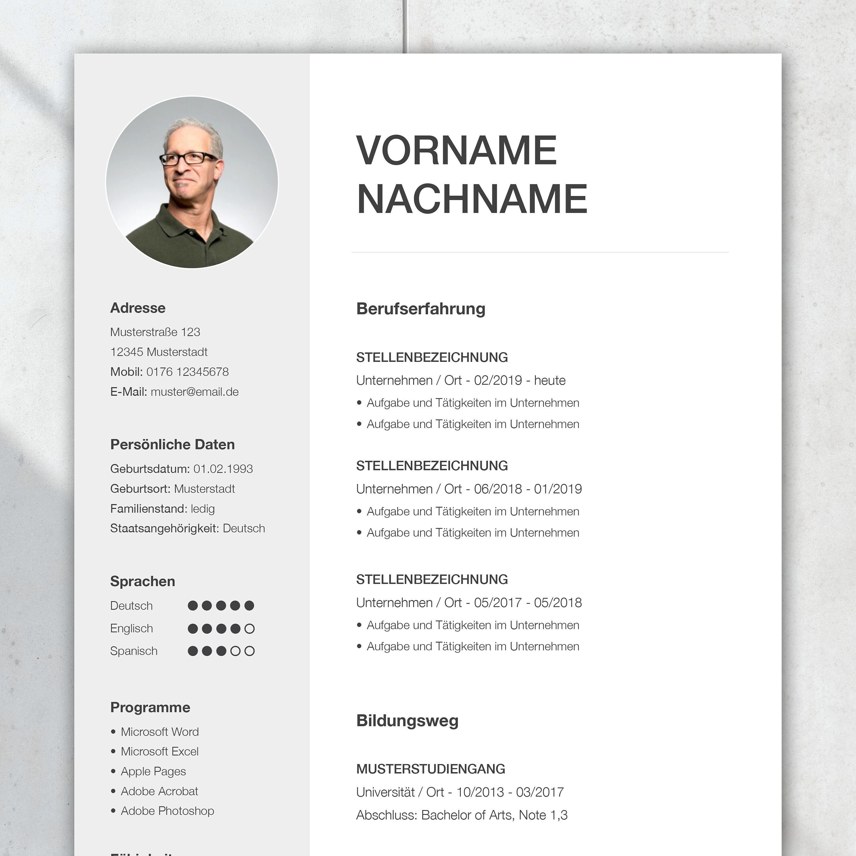 Bewerbungsvorlage Deutsch mit Lebenslauf Vorlage für Word und Pages