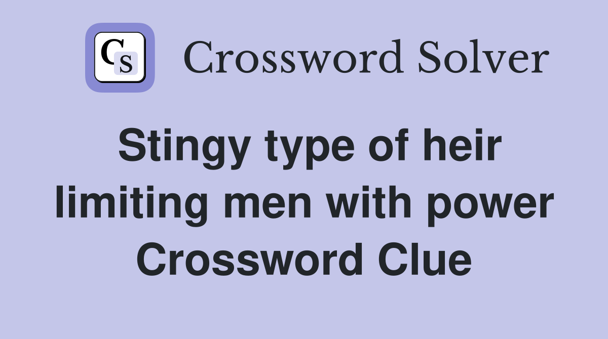 Stingy type of heir limiting men with power Crossword Clue Answers