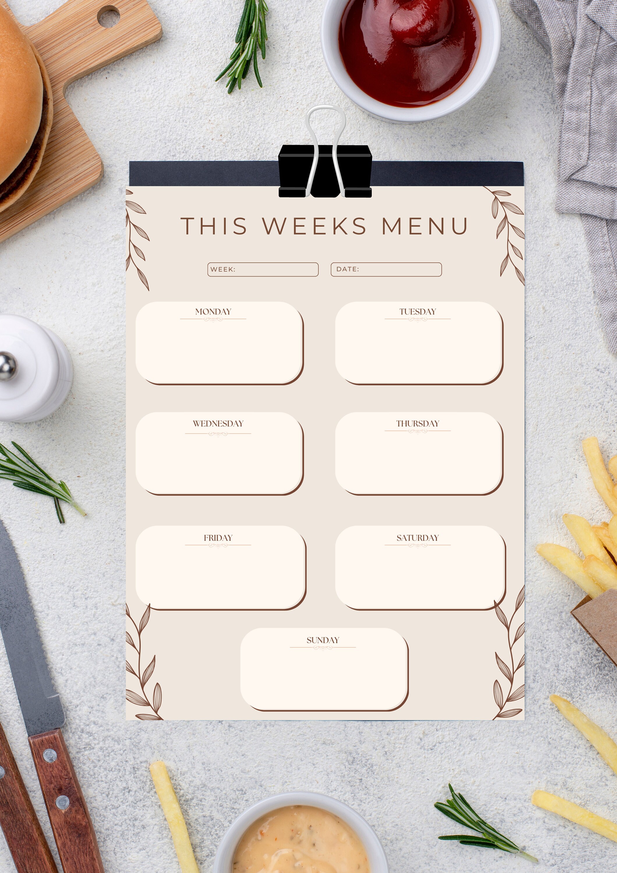 Printable WEEKLY DINNER MENU Printable and Reusable Undated 2024