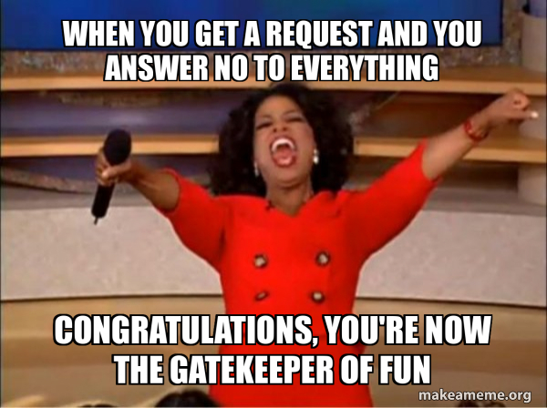 When you get a request and you answer no to everything Congratulations