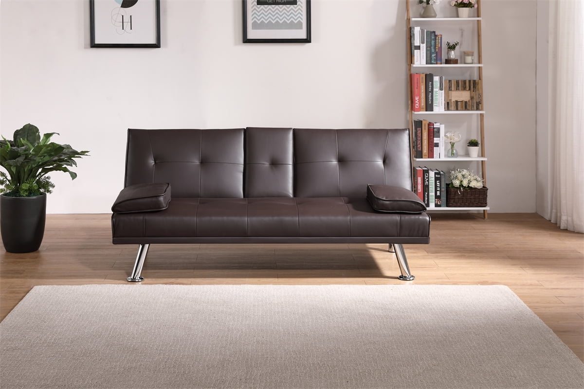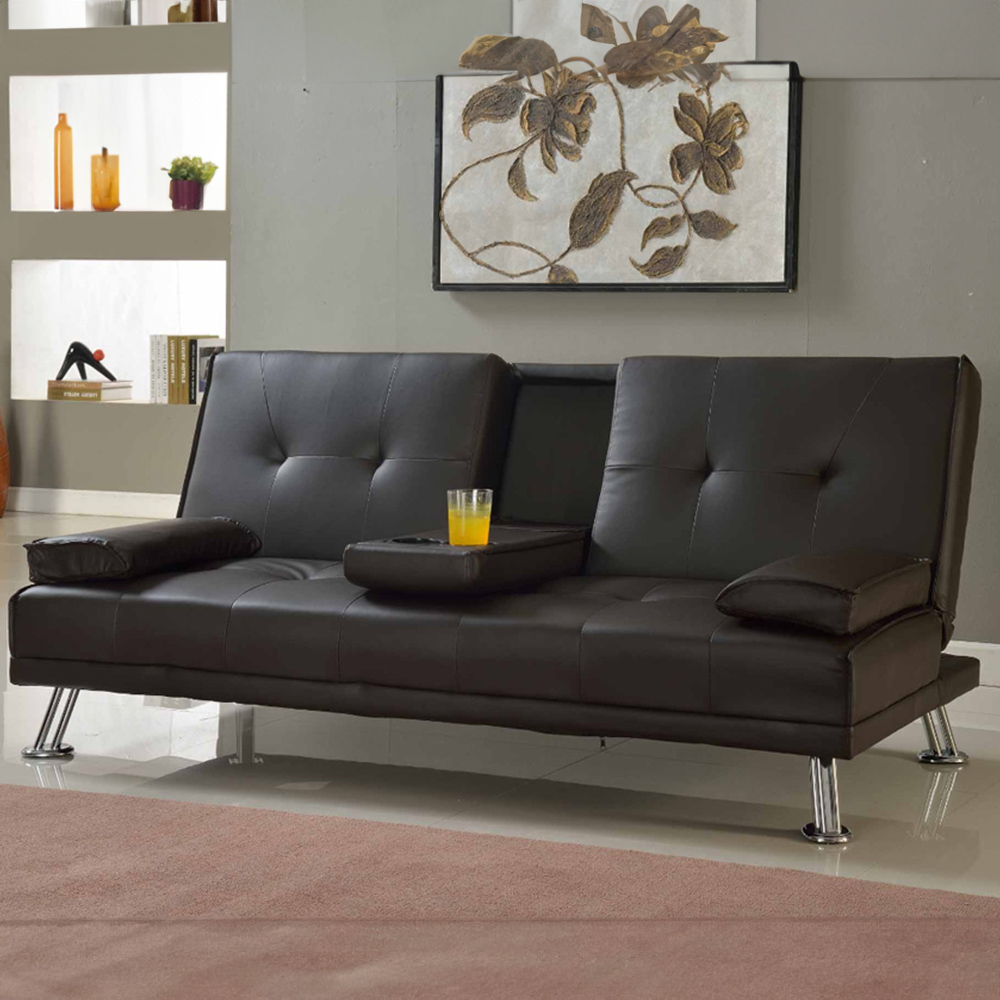 Home Detail Indiana Double Sleeper Brown Faux Leather Sofa Bed with Cup