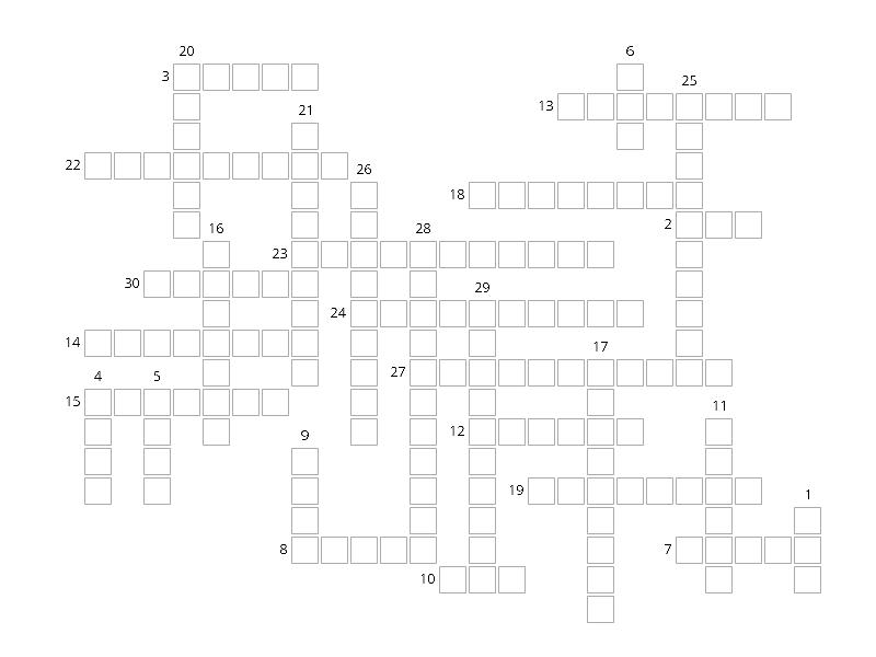 Numbers from 1 to 30 Crossword ESL worksheet by anamariaamt