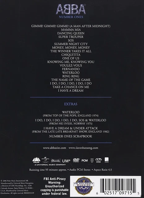 ABBA NUMBER ONES 2006 (DVD) ABBA £10 41 PicClick UK