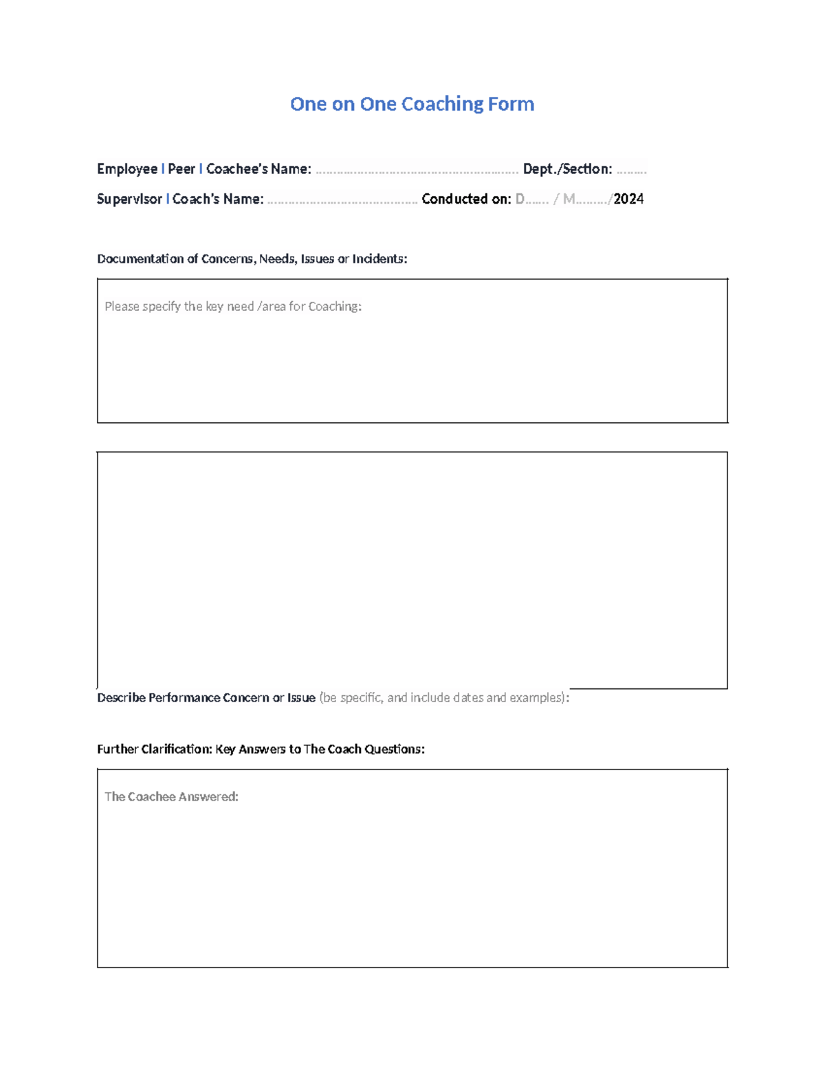 1Oneon One Coaching Form One on One Coaching Form Employee l Peer l