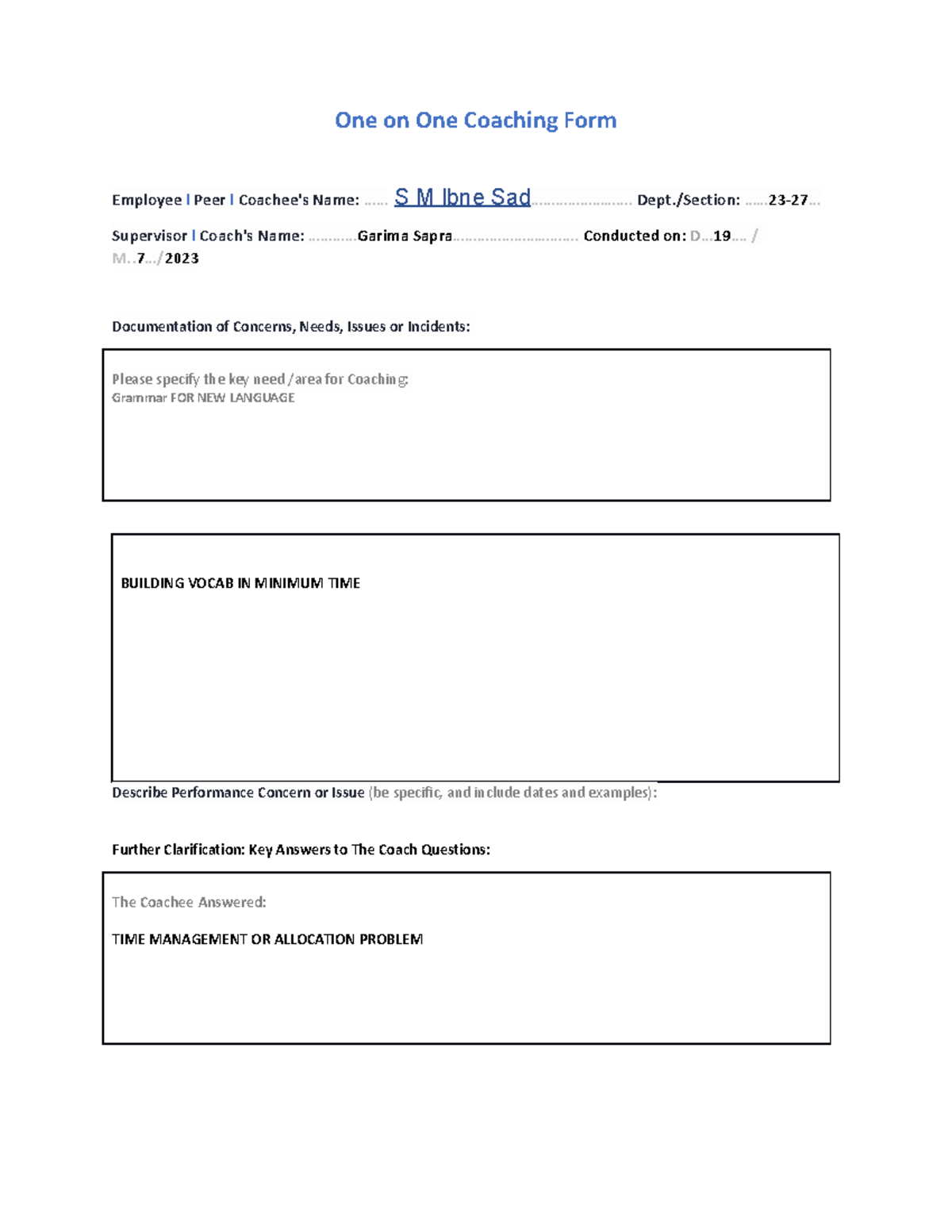 1Oneon One Coaching Form MGMT 601 UCW Studocu