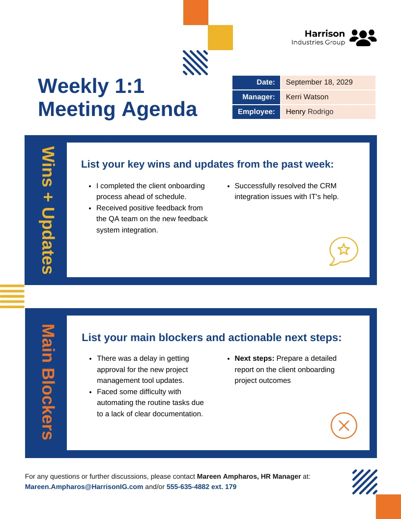 1:1 Meeting Agenda Template One on One Meeting Agenda Meeting Agenda