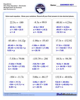 Solving One Step Equation Worksheets (printable online answers examples)