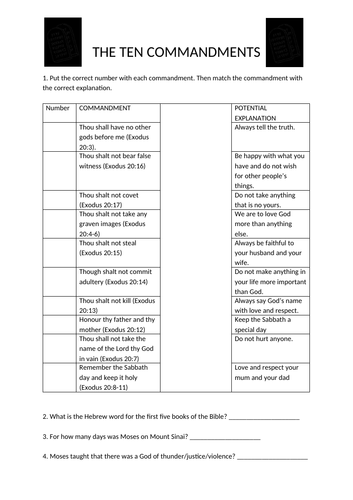 MOSES Lessons 10 11 Ten Commandments 60 Mins Teaching Resources