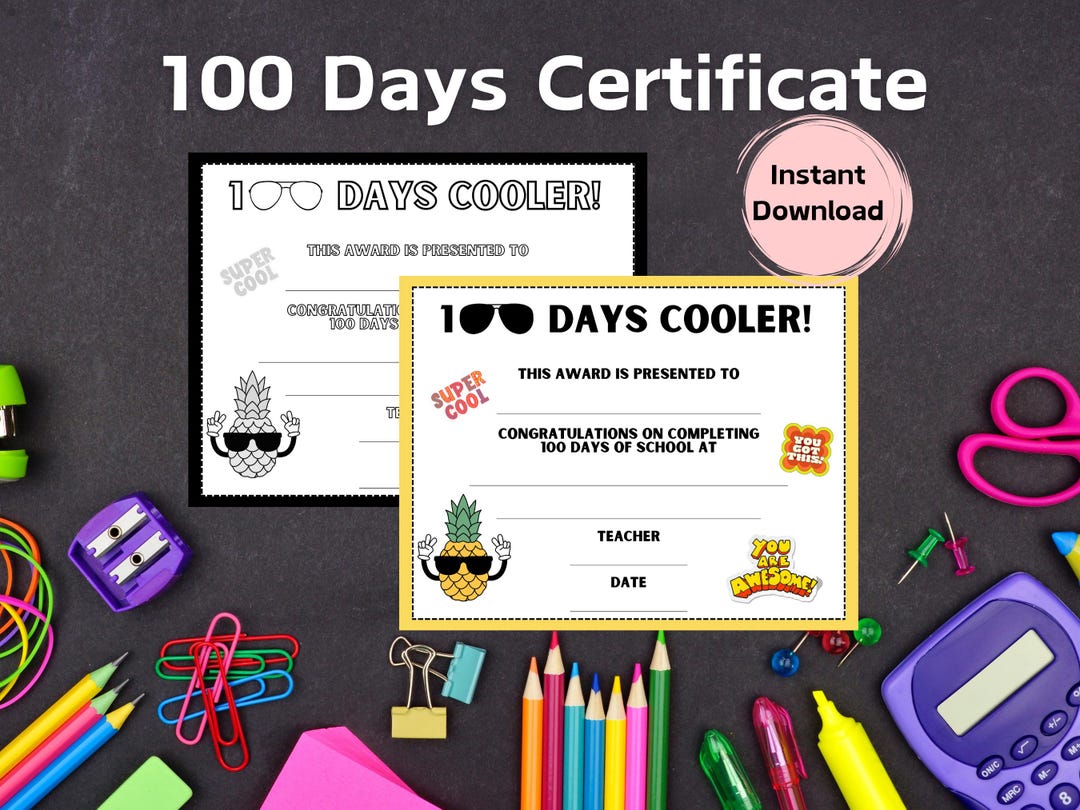 100 Days of School 100 Days Certificate 100 Days Cooler