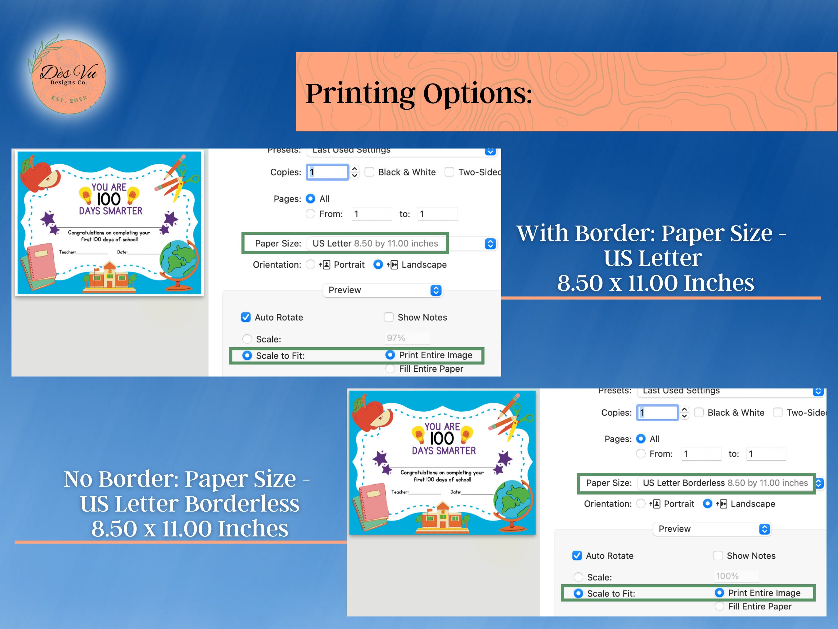 100 Days of school certificates Text Editable certificates Autofill