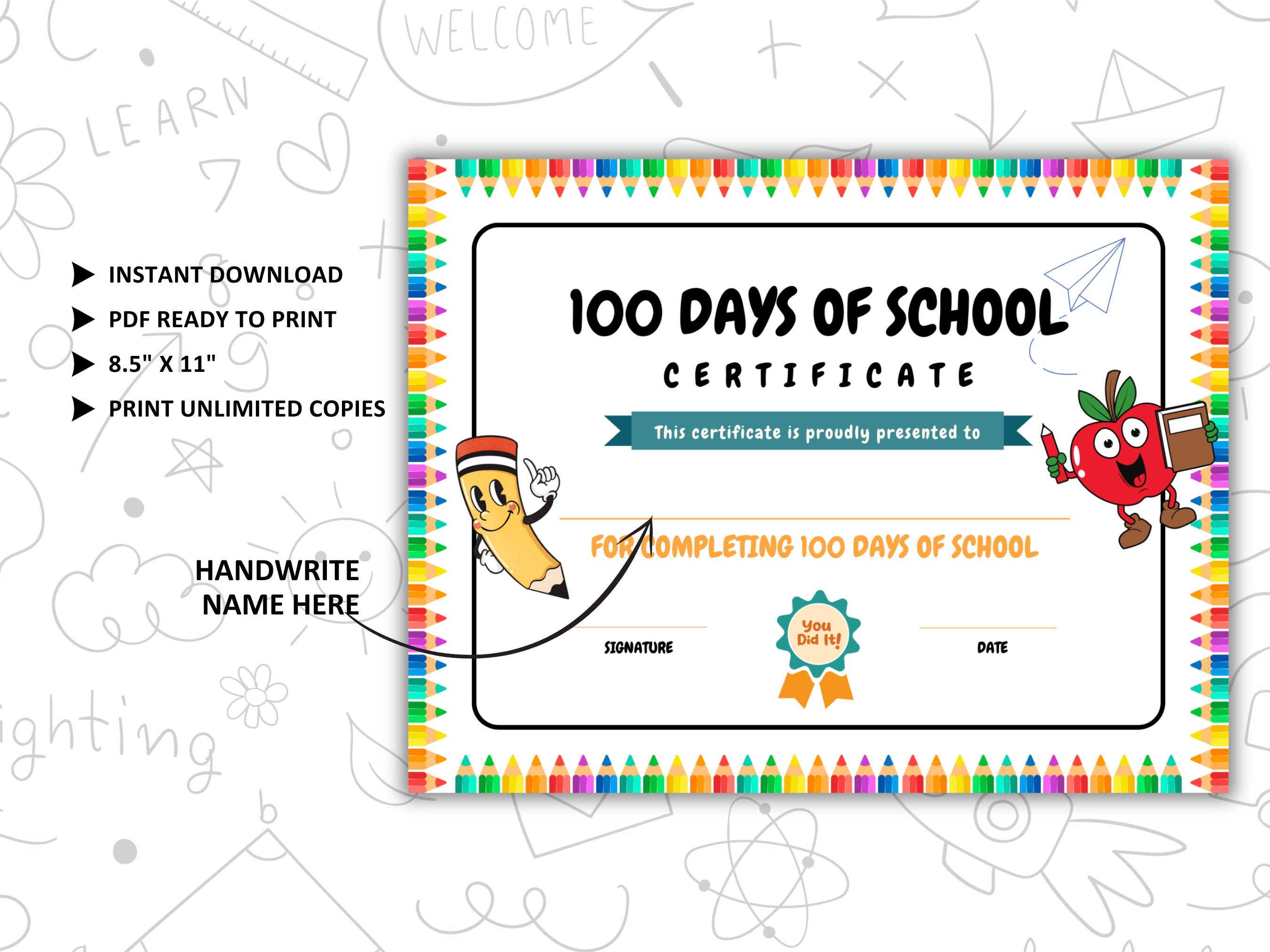 Free printable 100 days of school certificate Artofit