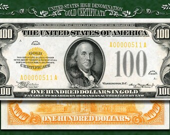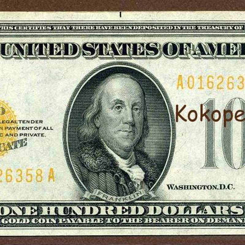 100 Dollar Gold Certificate Etsy
