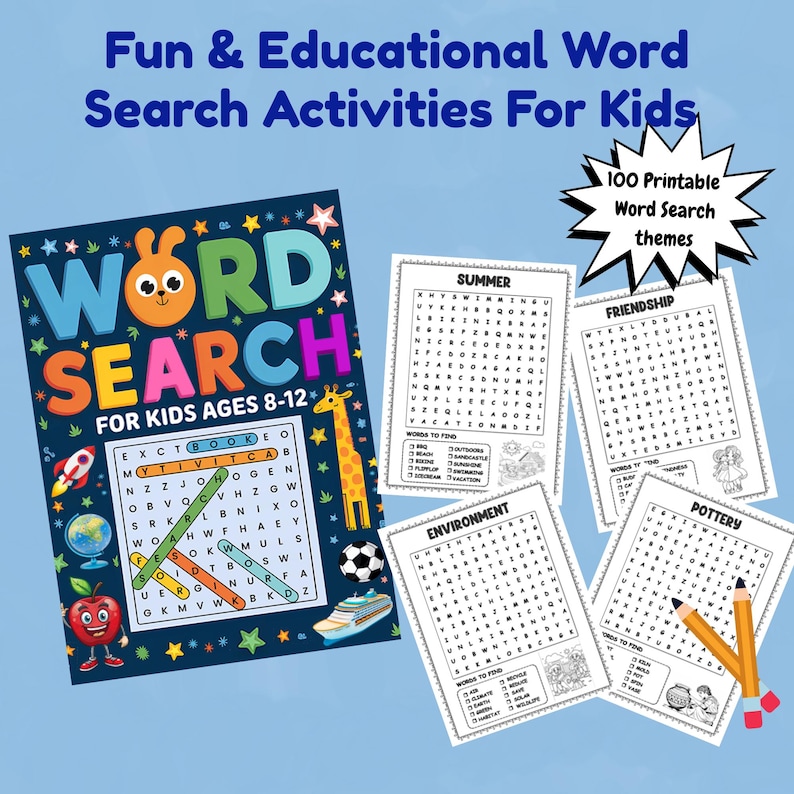 100 Themed Word Search Puzzles for Kids Ages 8 12 (printable Activity