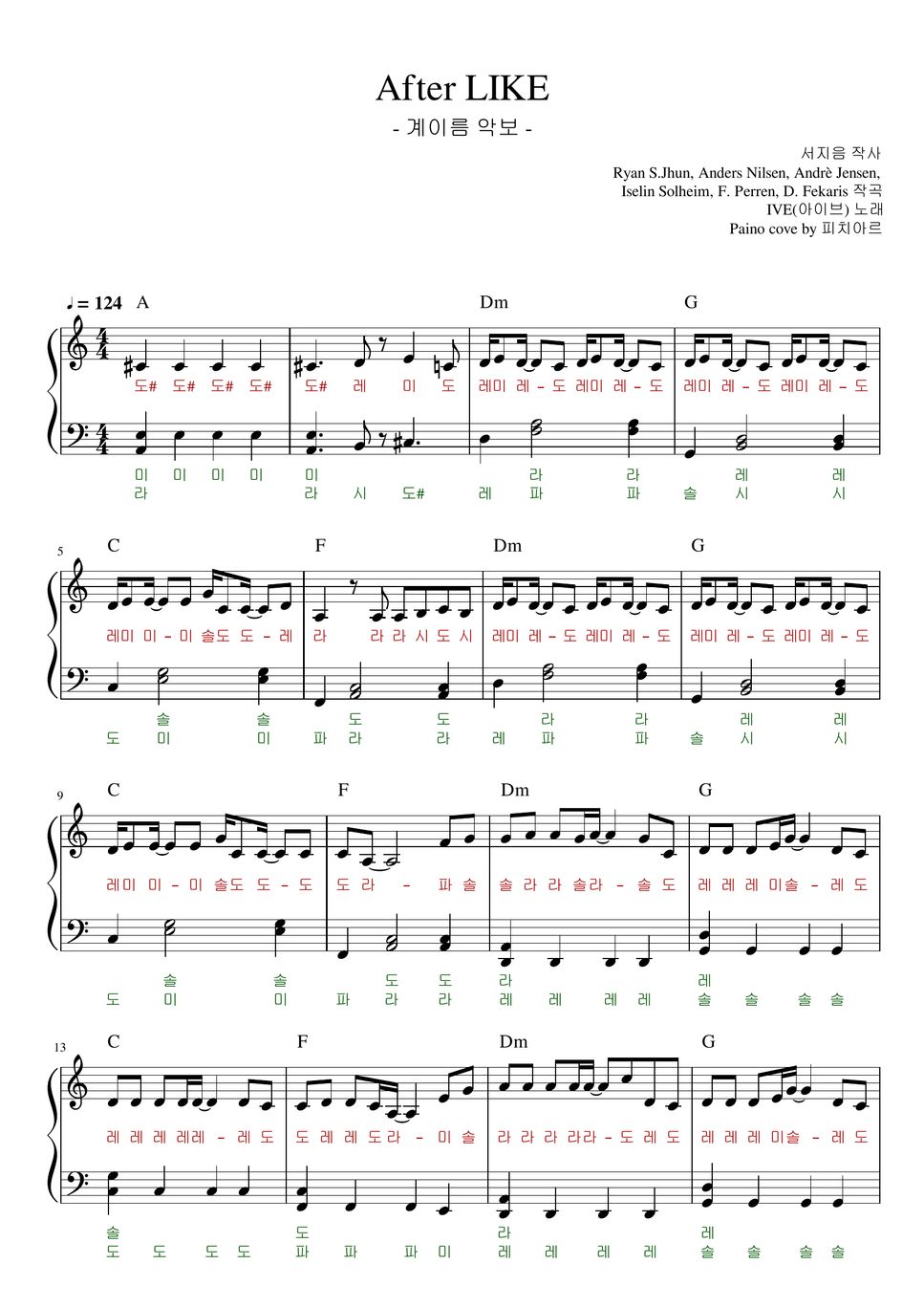 IVE(아이브) After LIKE (쉬운 계이름 악보 / 가요 악보) Sheets by 피치아르