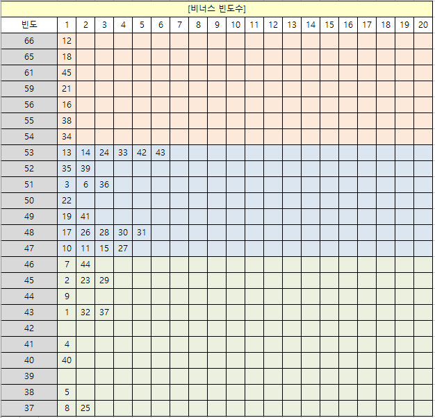 대박로또 당첨비법 :: 전체회차 및 비너스 빈도수(1099)