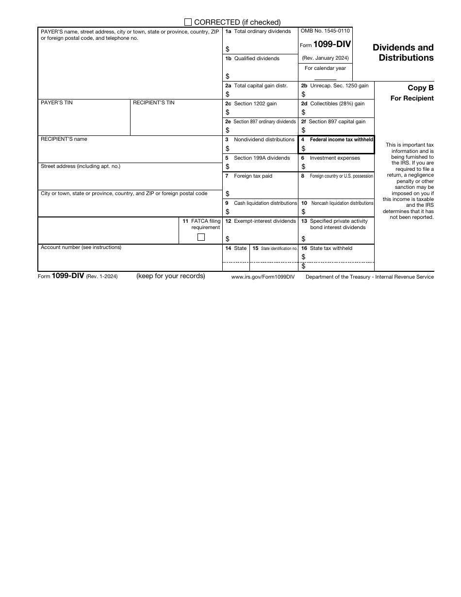 IRS Form 1099 DIV Download Fillable PDF or Fill Online Dividends and
