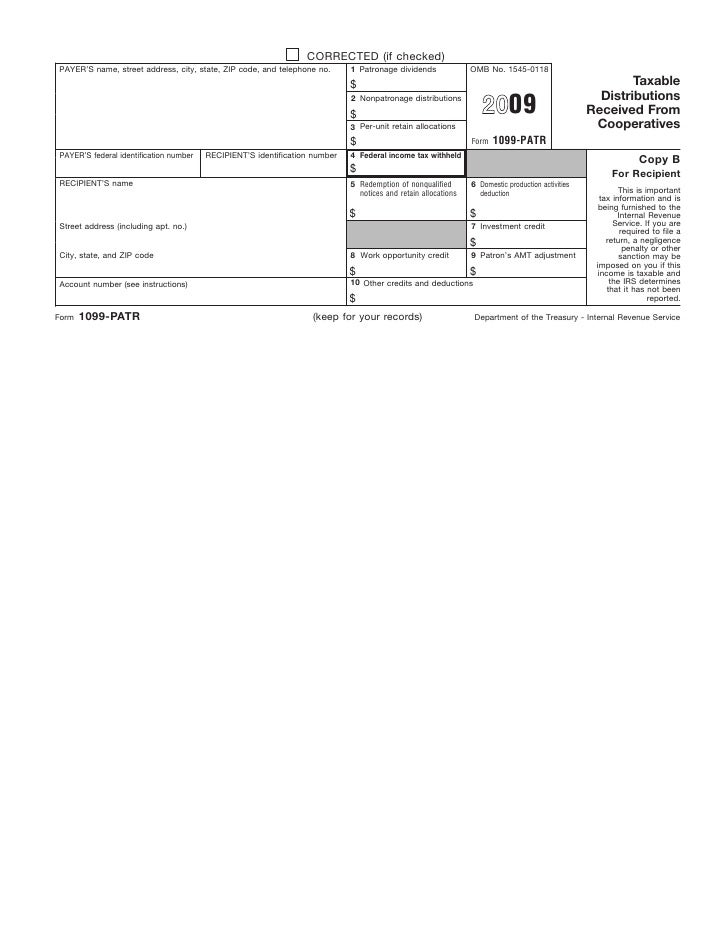 Form 1099 PATR Taxable Distributions Received From Cooperatives