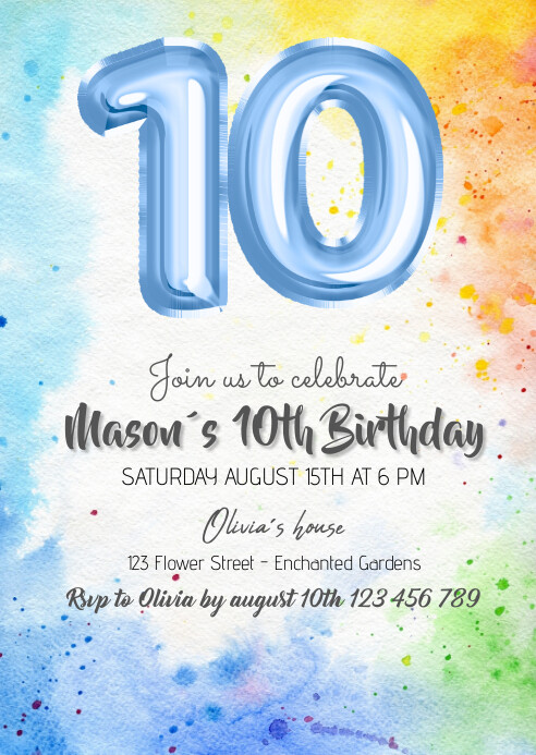 10 Year Old Boy Birthday Invitation Templates Foil Balloon First