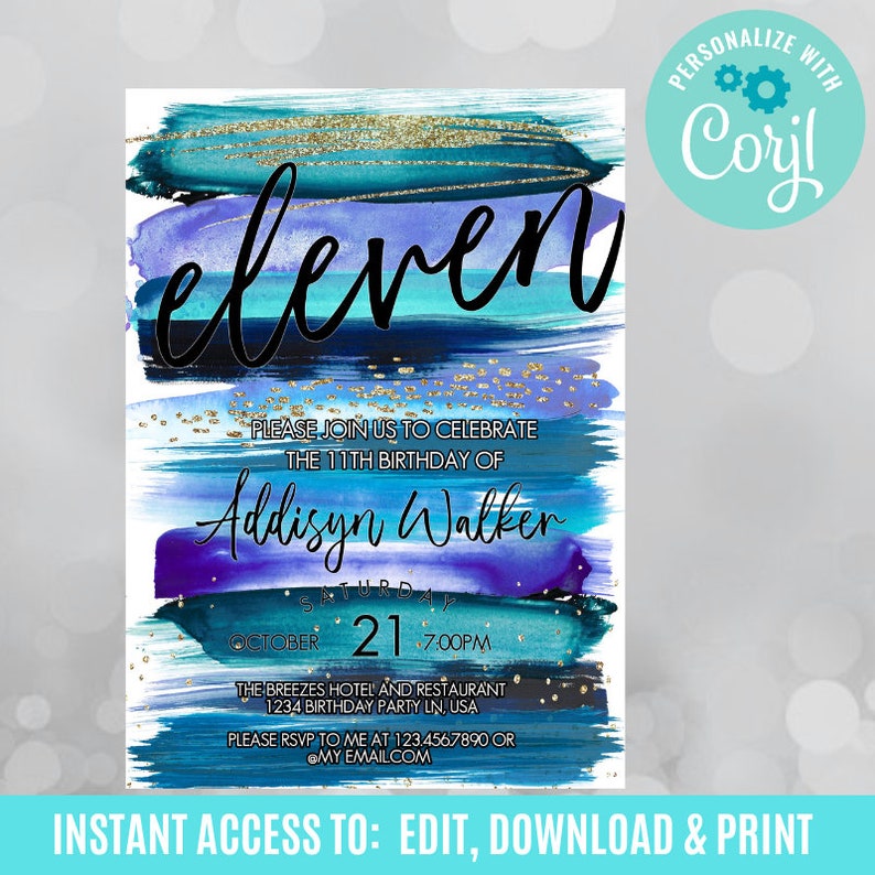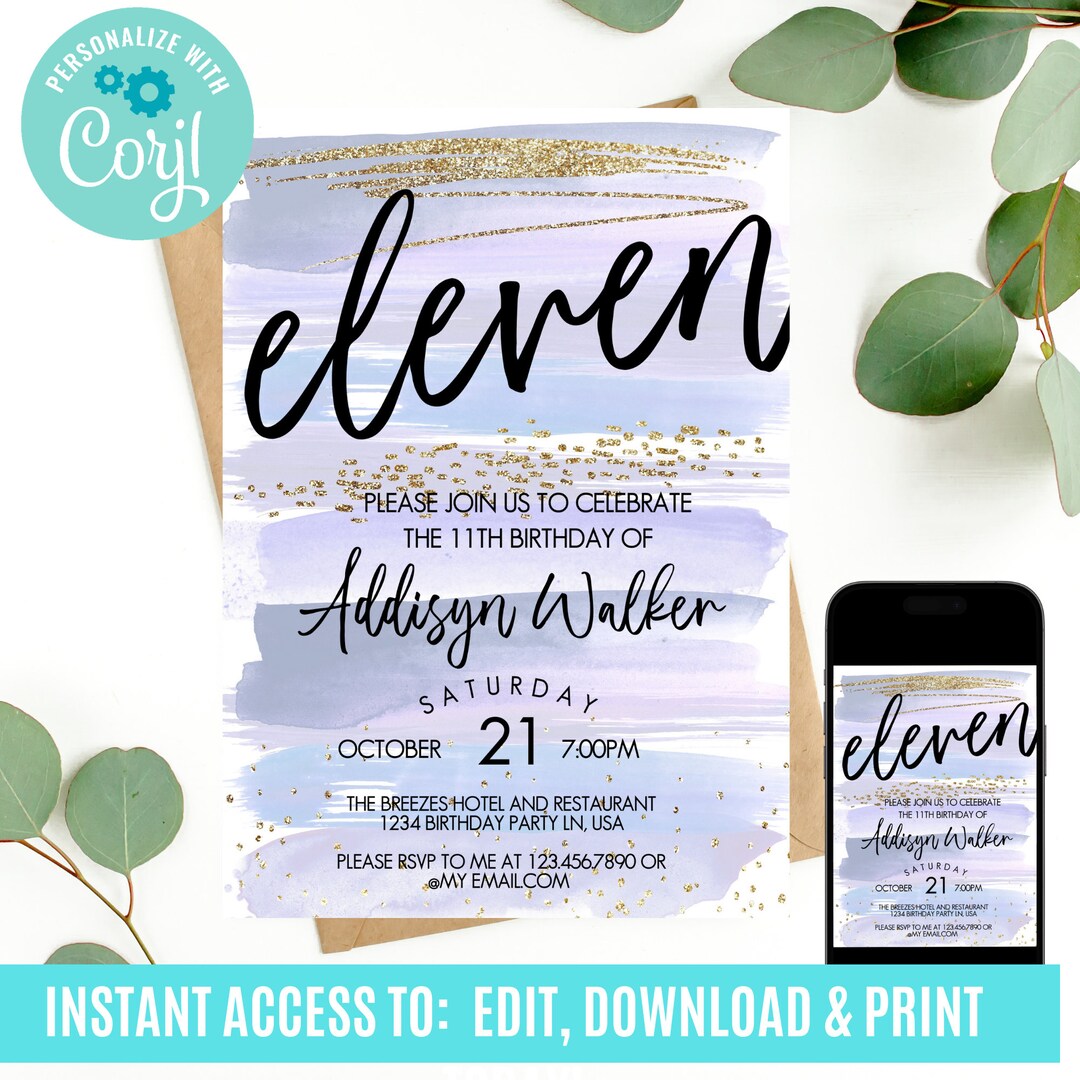 11th Birthday Invitation Templates Etsy