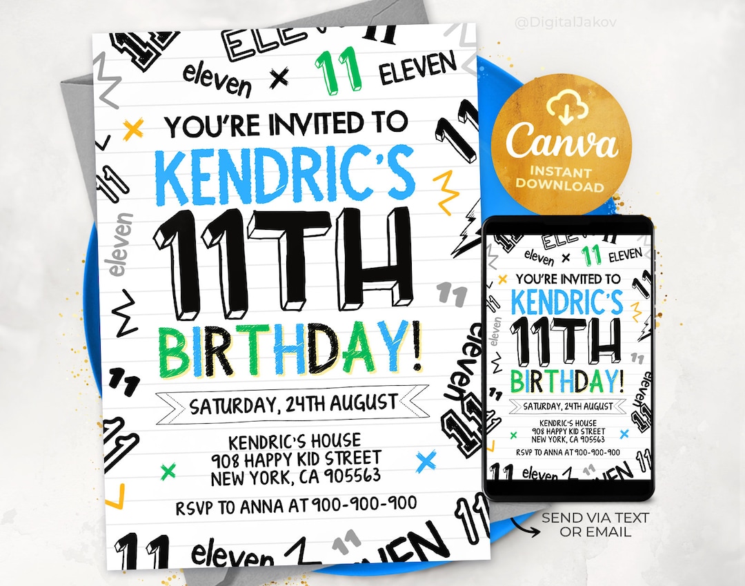11th Birthday Invitation Boy Birthday Invitation Canva Editable