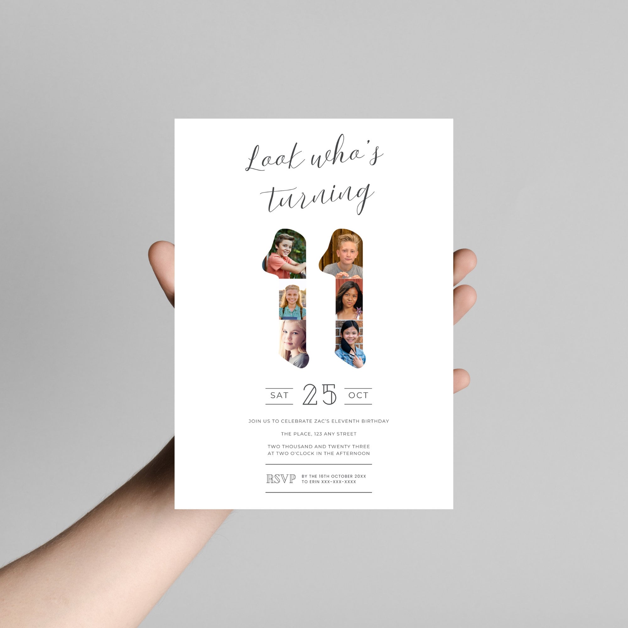 Editable Eleventh Birthday Invitation Minimal 11th Birthday Invite