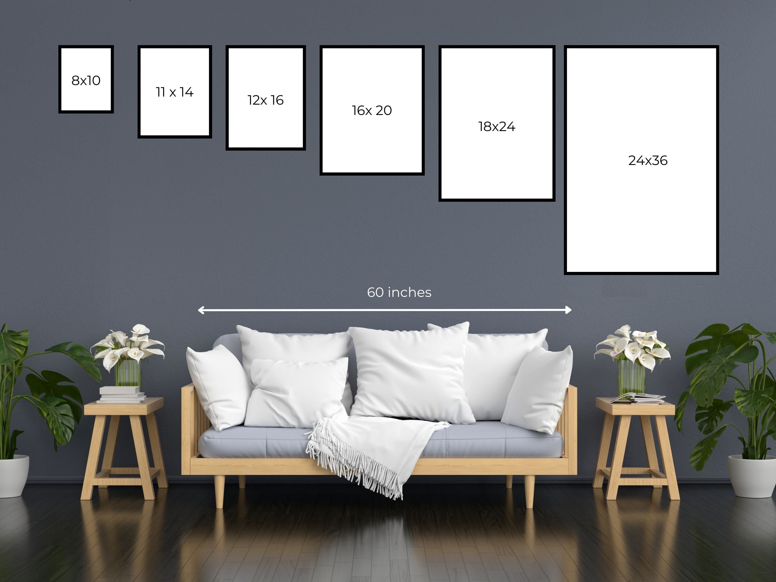 Living Room Wall Art Size Guide ~ Frame Sizing Mockup ~ Poster Size