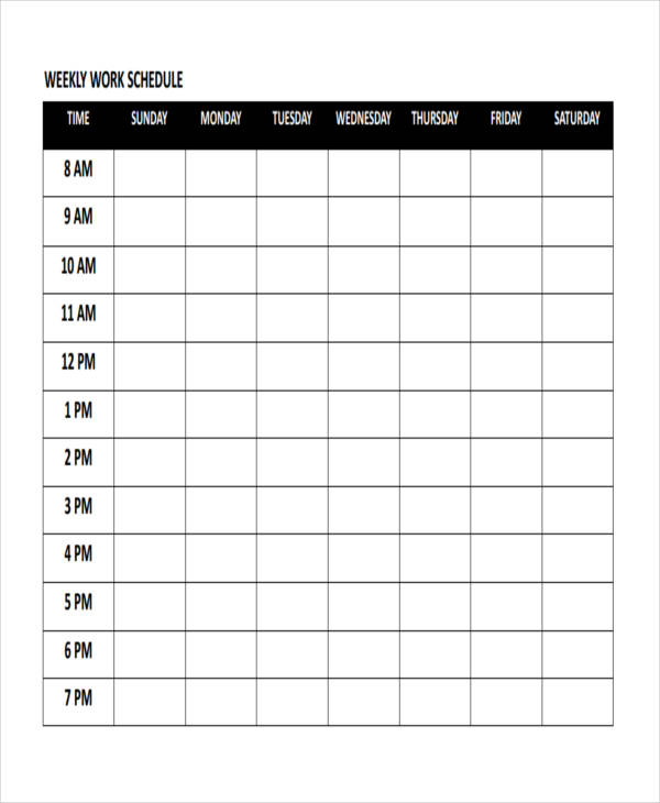 Work Schedule Templates 12 Free Word Excel PDF Formats Samples