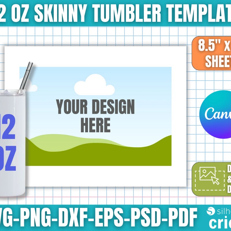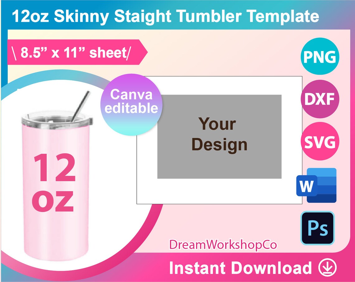 12oz Skinny Tumbler Template: Sublimation Design Canva SVG Dxf PNG