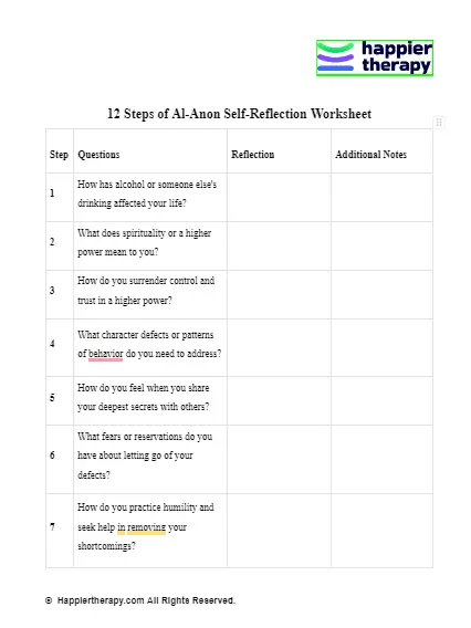 12 Steps Of Al Anon Self Reflection Worksheet HappierTHERAPY