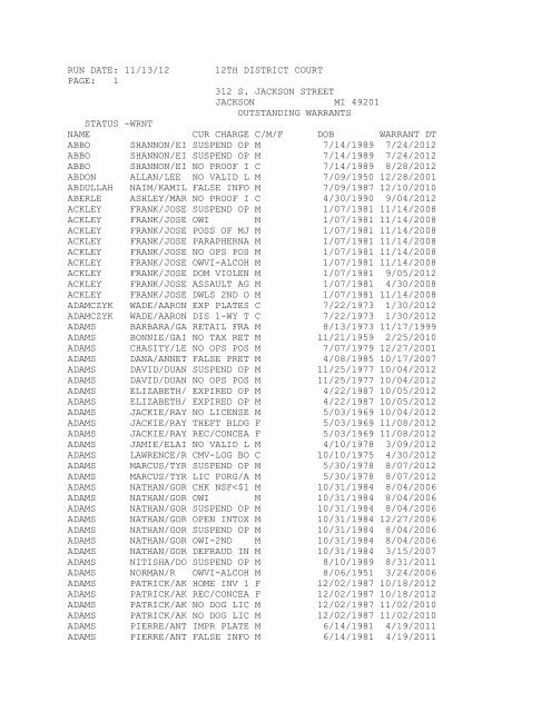 12 TH District Court Jackson Michigan Court Warrants PDF