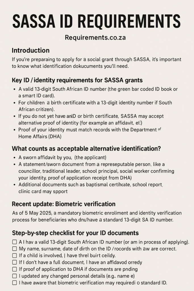 SASSA ID Requirements (2025): Documents Needed to Apply for Any Grant