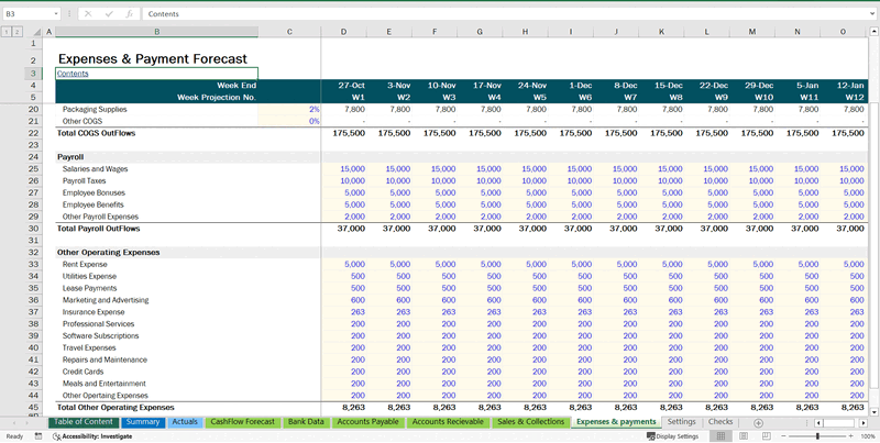 13 Week Cash Flow Template in Excel Google Sheets Download