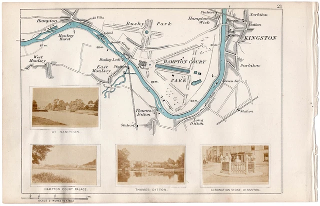 1873 HENRY TAUNT River Thames Map Hampton Court Thames Ditton Surbiton