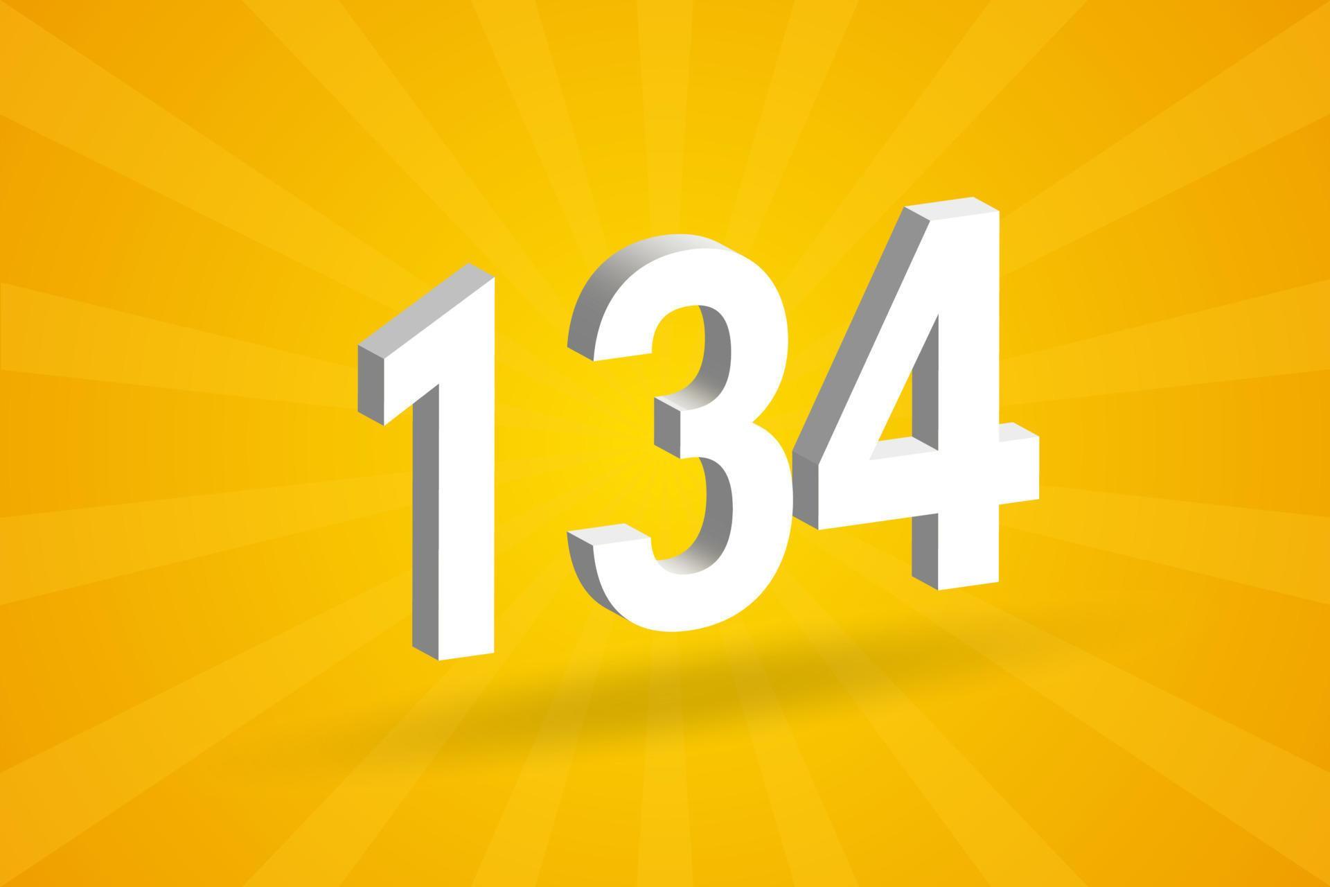 3D 134 number font alphabet White 3D Number 134 with yellow background
