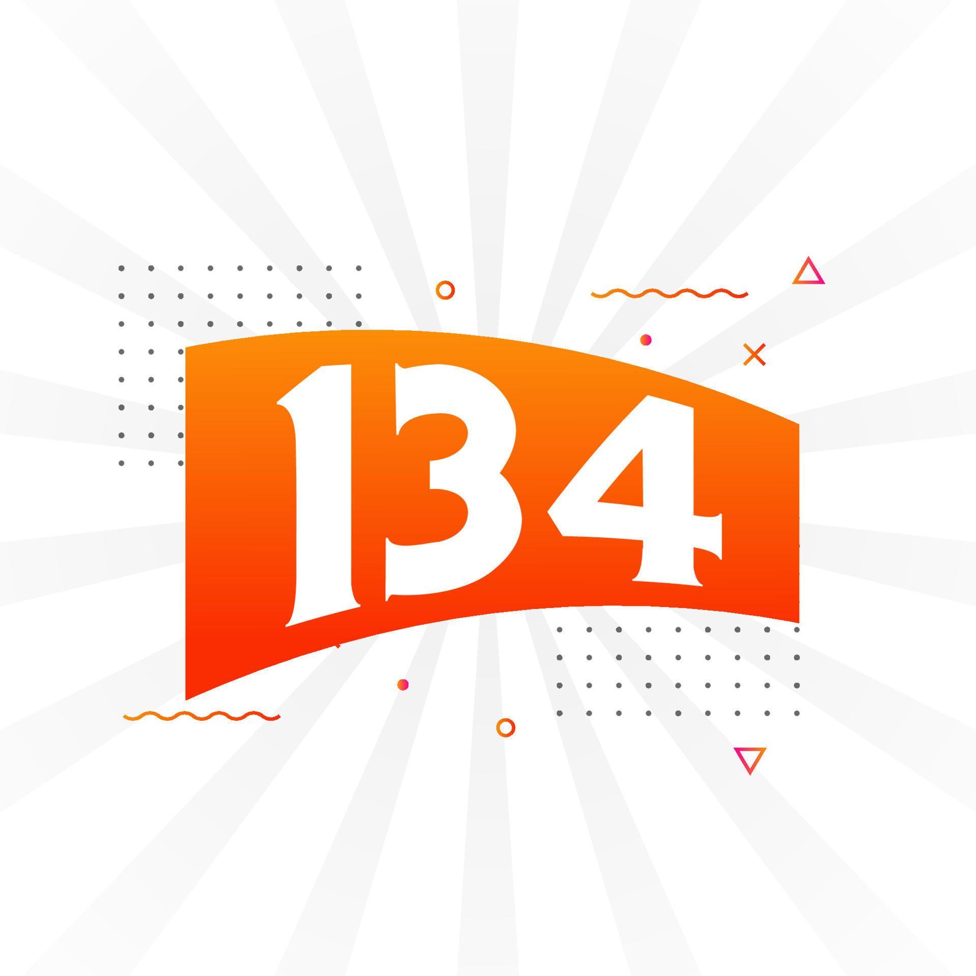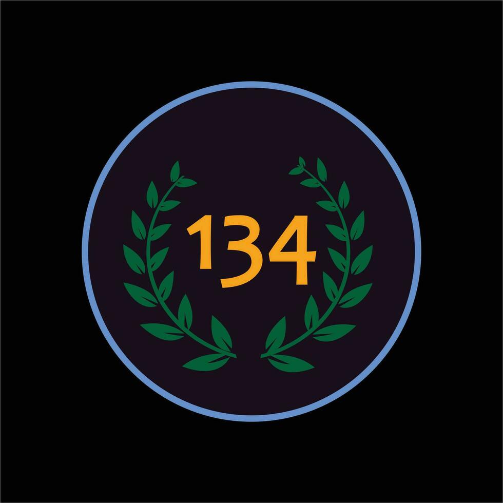 134 Numeral Logo with Round Frame in Blue Color Stock Vector