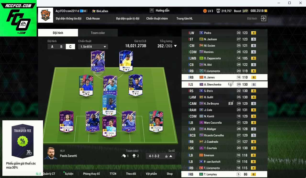 Acc #69798: Chelsea 18 020b có Sheva CU K De Bruyne CU Gullit BTB